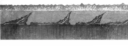 Por último la ilustración siguiente muestra el aspecto de las tierras cuya vista seccional está representada en el grabado anterior.