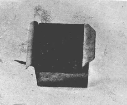 Después de puesta la cuchara en el cubo, éste se llena de arena para cubrir los granos como se ve en el grabado adjunto.