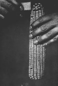 Se sigue dando vuelta a la mazorca y el cuarto grano se extrae de la base, el quinto de la parte media y el sexto de la punta.