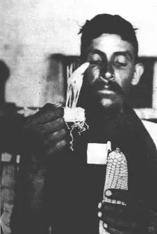 Una vez separados los seis granos de la mazorca, se colocan en la cuchara como se ve en el grabado que completa la descripción de este procedimiento.