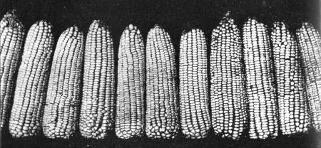 He sembrado granos de maíz de una mazorca de alto poder germinativo, pero de pobre apariencia me ha dado un rendimiento de 57 hectolitros por hectárea en tanto que granos de una hermosa mazorca sólo ha dado un rendimiento de 36 hectolitros. Con esto se ve que no hay relación alguna entre el aspecto exterior y el rendimiento de una mazorca.