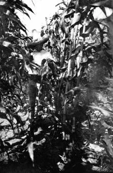 Un muchacho puede hacer este trabajo de castración de las plantas para evitar que las cañas débiles se reproduzcan en el siguiente año. La castración como se ve consiste en arrancar la banderilla o sea la parte en que está envuelta la flor antes de que abra.