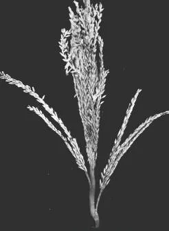 La flor masculina o panoja mostrando las tres secciones. También se llama miahuatl entre los indígenas.